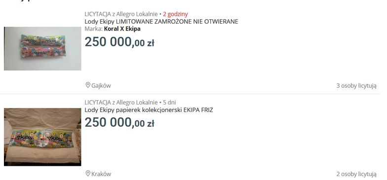W serwisach aukcyjnych pojawiają się oferty sprzedaży pustych papierków po lodach ekipa.